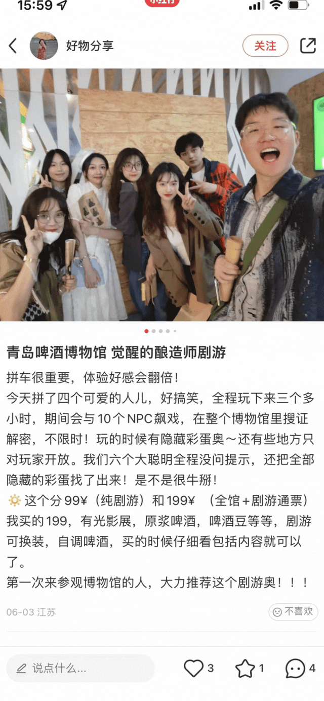 整座博物馆由青岛啤酒百年前的老厂房、老设备改扩而成。今年,青啤还打造了青岛首家博物馆实景穿越剧游《觉醒的酿造师》,创新融合了年轻人最爱的剧本杀、密室逃脱、参观打卡,开启了全新的博物馆沉浸式文化体验。