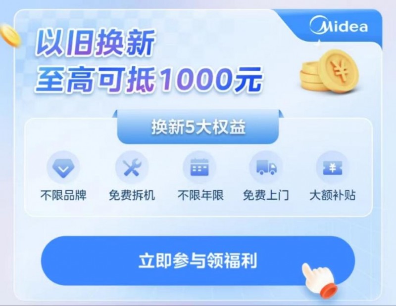 为进一步践行“双碳”战略,倡导绿色、环保、低碳的生活方式,此次美的全球美粉节再次带来以旧换新活动,在5月6日-6月30日期间,不限品牌、不限年限,只要参与美的全球美粉节以旧换新活动,美的就提供免费上门拆机服务,更有80亿大额补贴相送,为用户带来超值焕新体验!